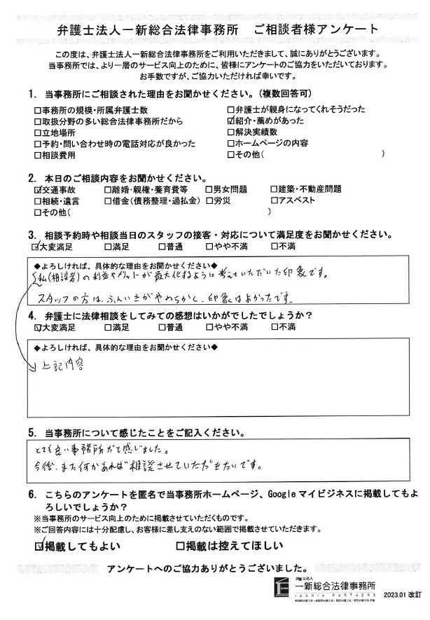 「交通事故」についてお悩みの方、弁護士をお探しのみなさまは、一新総合法律事務所までどうぞお気軽にお問い合わせください。