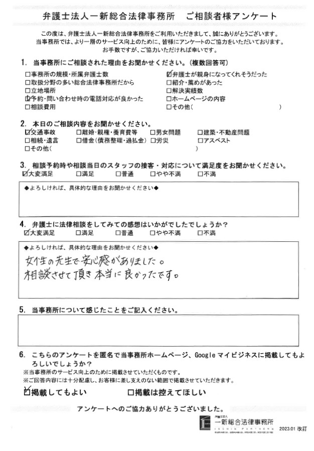 「交通事故」についてお悩みの方、弁護士をお探しのみなさまは、一新総合法律事務所までどうぞお気軽にお問い合わせください。