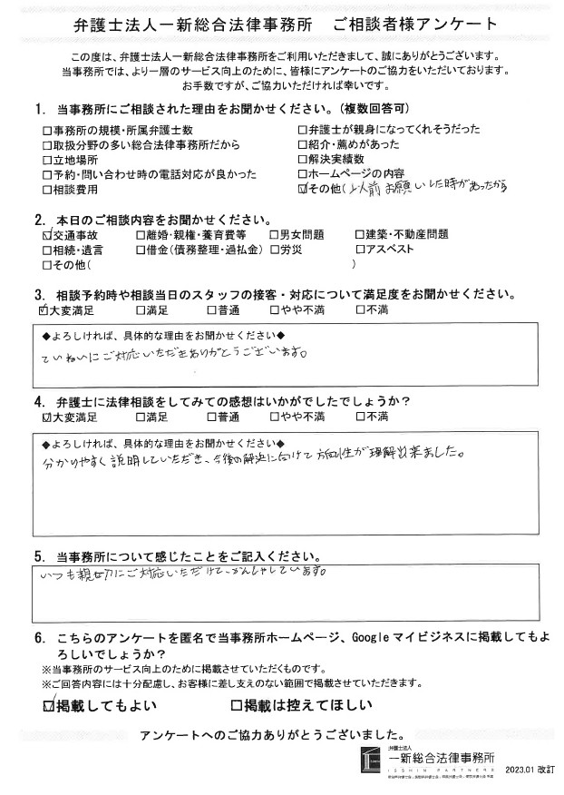 「交通事故」についてお悩みの方、弁護士をお探しのみなさまは、一新総合法律事務所までどうぞお気軽にお問い合わせください。