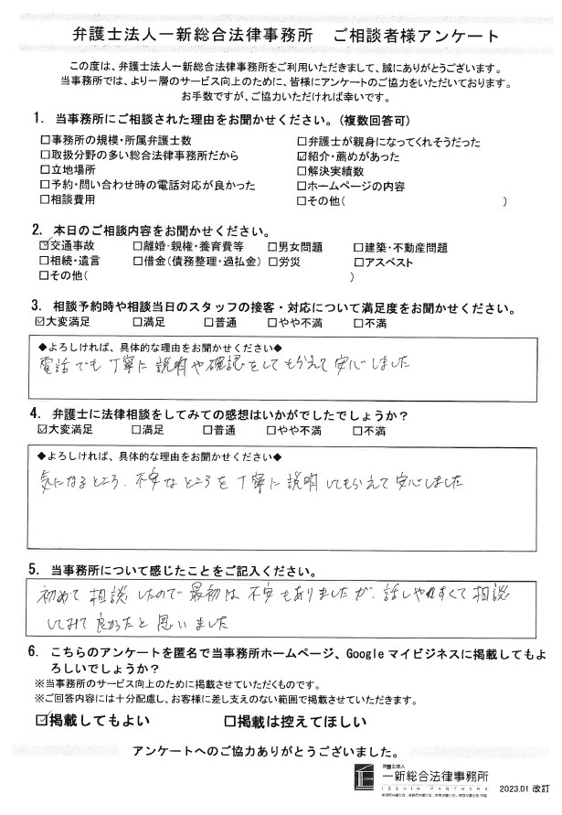 「交通事故」についてお悩みの方、弁護士をお探しのみなさまは、一新総合法律事務所までどうぞお気軽にお問い合わせください。