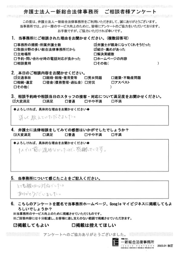 「交通事故」についてお悩みの方、弁護士をお探しのみなさまは、一新総合法律事務所までどうぞお気軽にお問い合わせください。